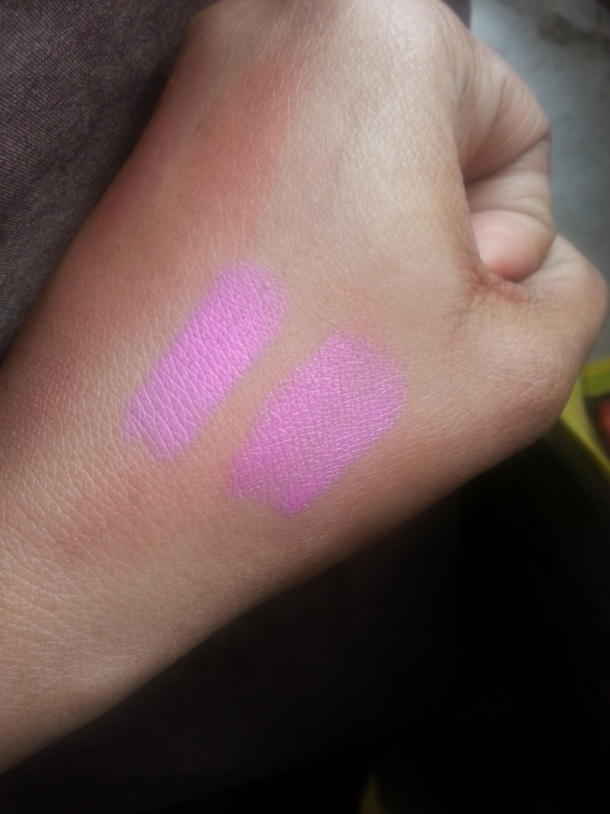 Wet n Wild Dollhouse pink (left), Maybelline Pink Pop (right)